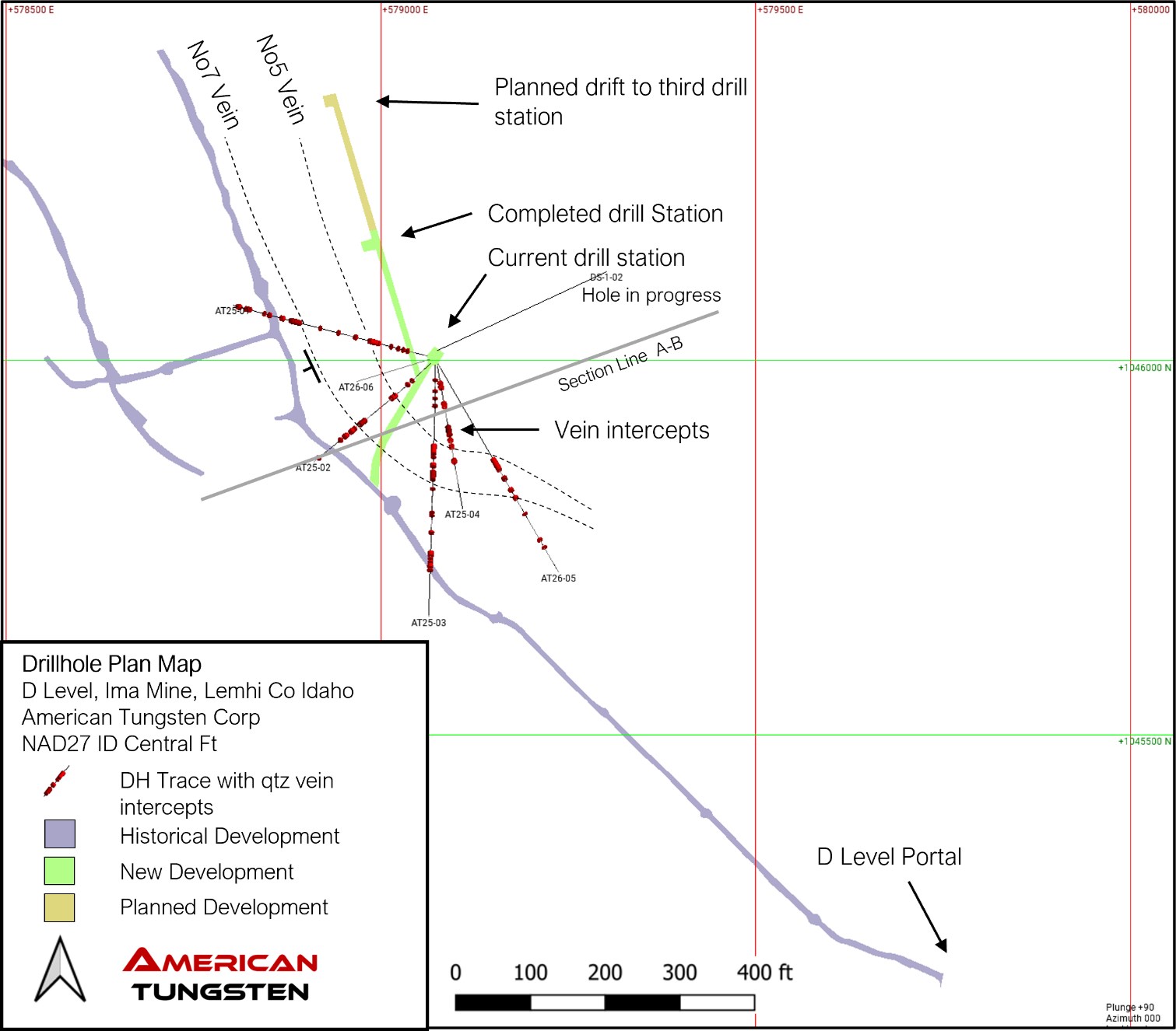 January 13, 2026 (Source) — American Tungsten Corp. (CSE: TUNG) (OTCQB: TUNGF) (FSE: RK90) (“American Tungsten” or the “Company) is pleased to announce an update on advancing the underground drill program at the IMA mine. To date, 2,120 feet of drilling consisting of six holes has been completed.
