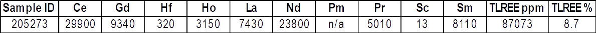Table 1. Light rare earth element assays (ppm or grams per ton)