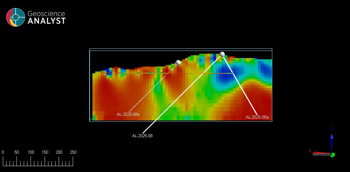 Figure 5 – Target 7, Proposed drill holes AL-2025-008, 008a, 008b