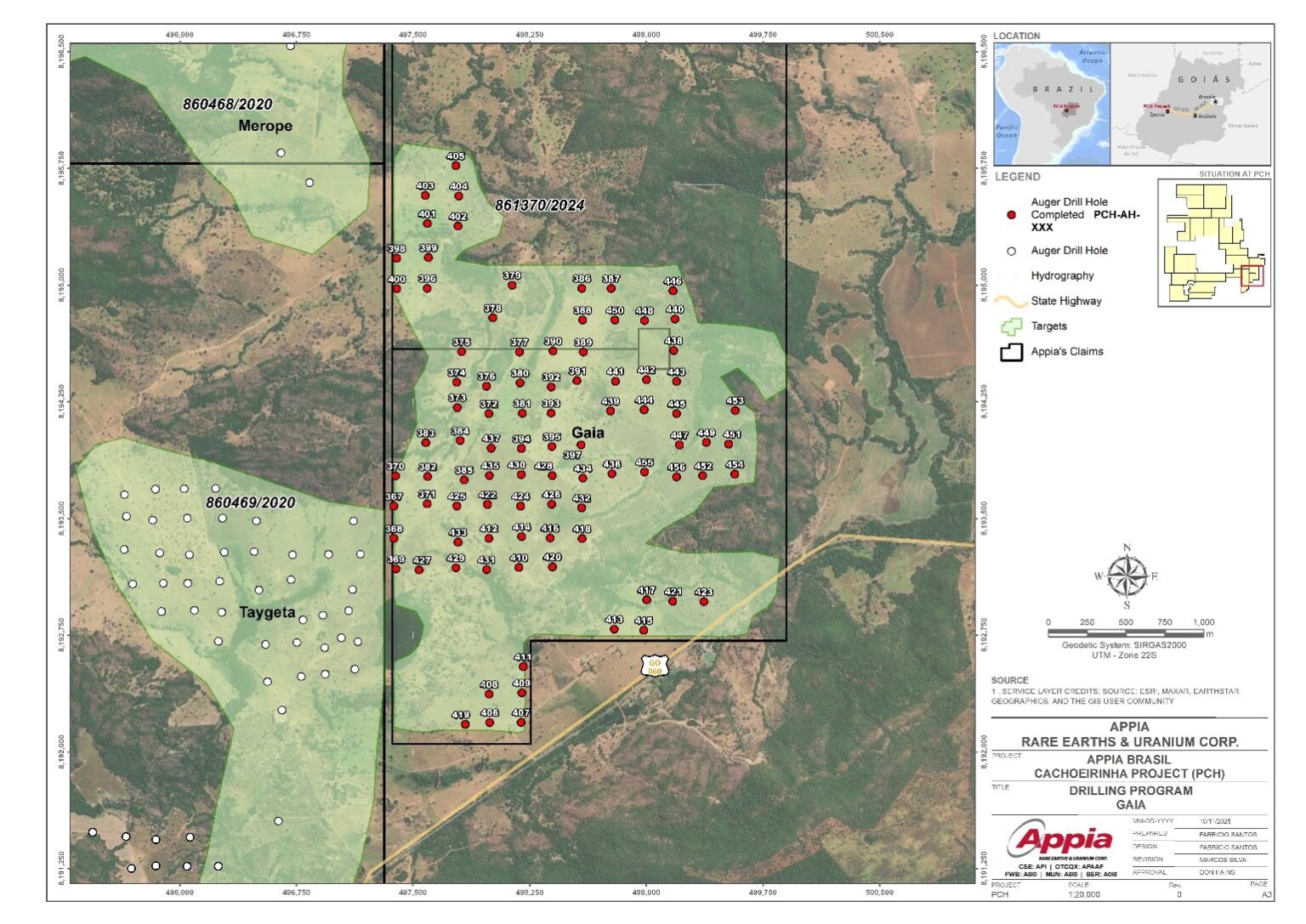 Appia Closes Non-Brokered Private Placement, Completes Auger Drilling at Gaia, Ships Samples to the Lab, and Advances a New Auger Phase at Taygeta – PCH Project (Goiás, Brazil)