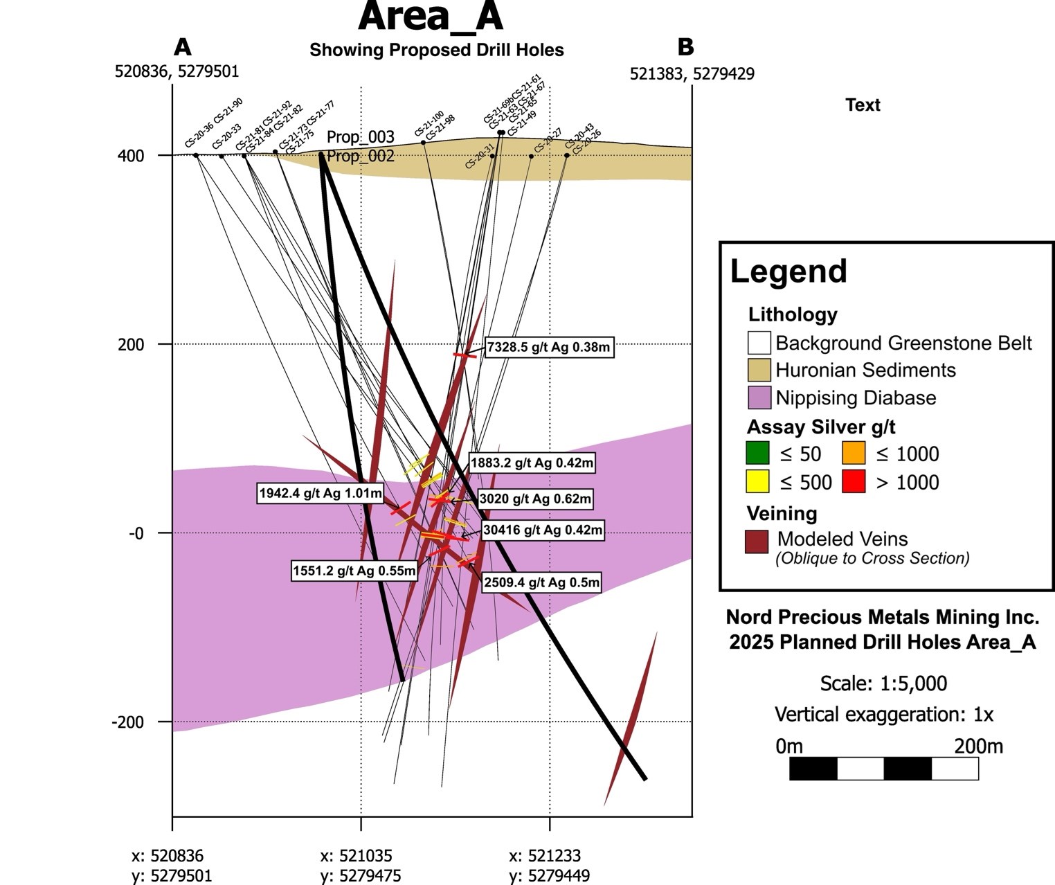 This first phase will be used to follow up on the newly modelled data which identified a potential 29 veins. The first three holes will be testing potential silver veins and vein extensions above and below the Nipissing Diabase as well as silver veins near the upper and lower contacts between the diabase and the Archean volcanic lithologies.