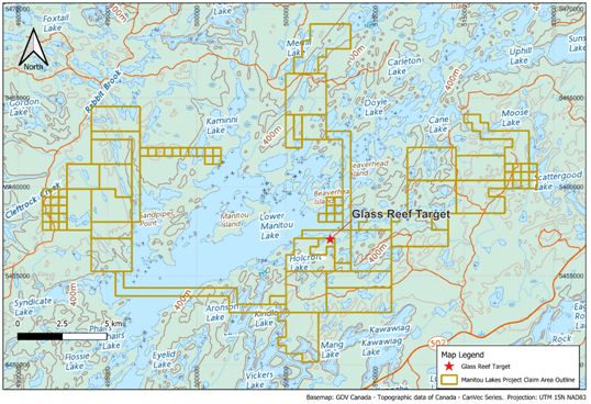 Figure 1: Location of the Glass Reef Target within the Manitou Lakes Project