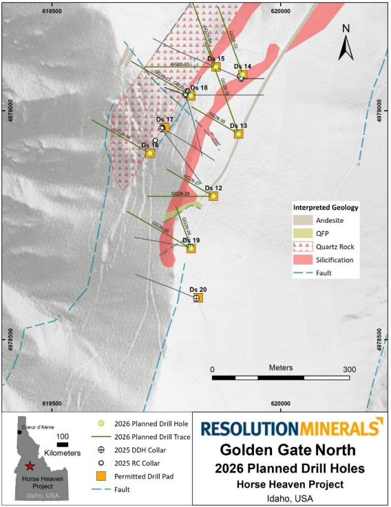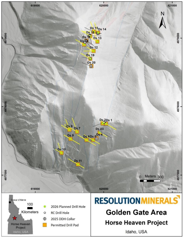 Resolution is advancing preparations for the 2026 field season, with drill at Golden Gate set to commence in early May 2026.