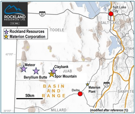 Rockland Resources Ltd. (CSE: RKL) (OTCQB: BERLF) is advancing critical minerals exploration and is specializing in beryllium at its strategically located Meteor, Beryllium Butte and Claybank projects in the Spor Mountain region of Utah, USA. Spor Mountain is home to Materion’s (NYSE: MTRN) Spor Mountain Mine, the largest beryllium producer in the world and continuously mined since 1969.