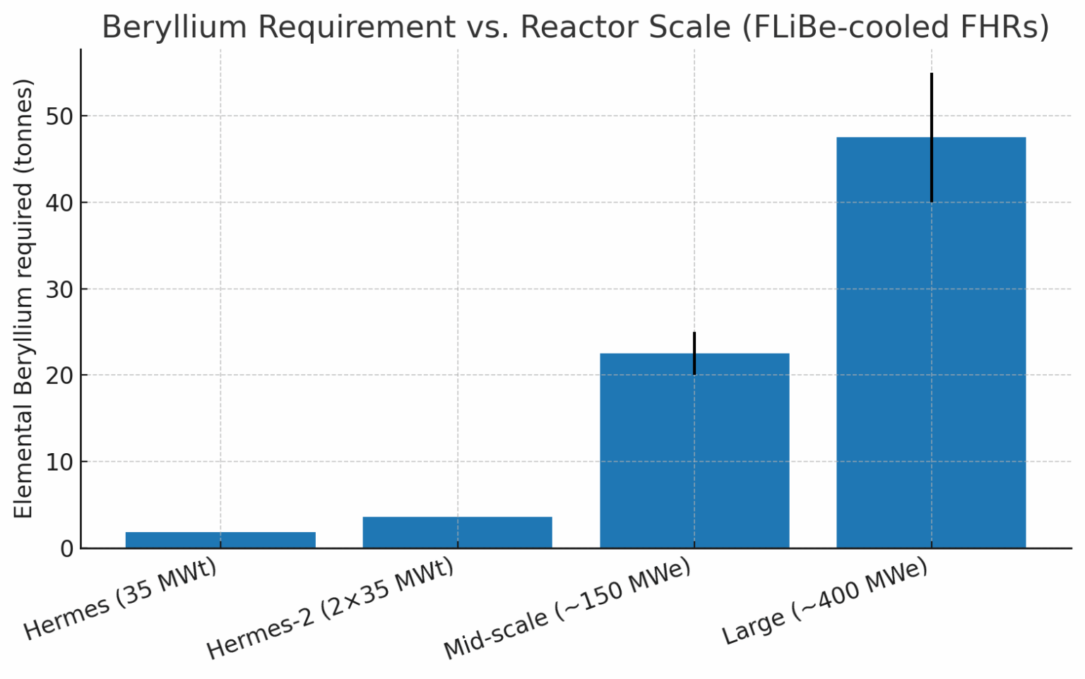 ⚡ Mid-scale FHR (~150 MWe): ~20–25 t Be