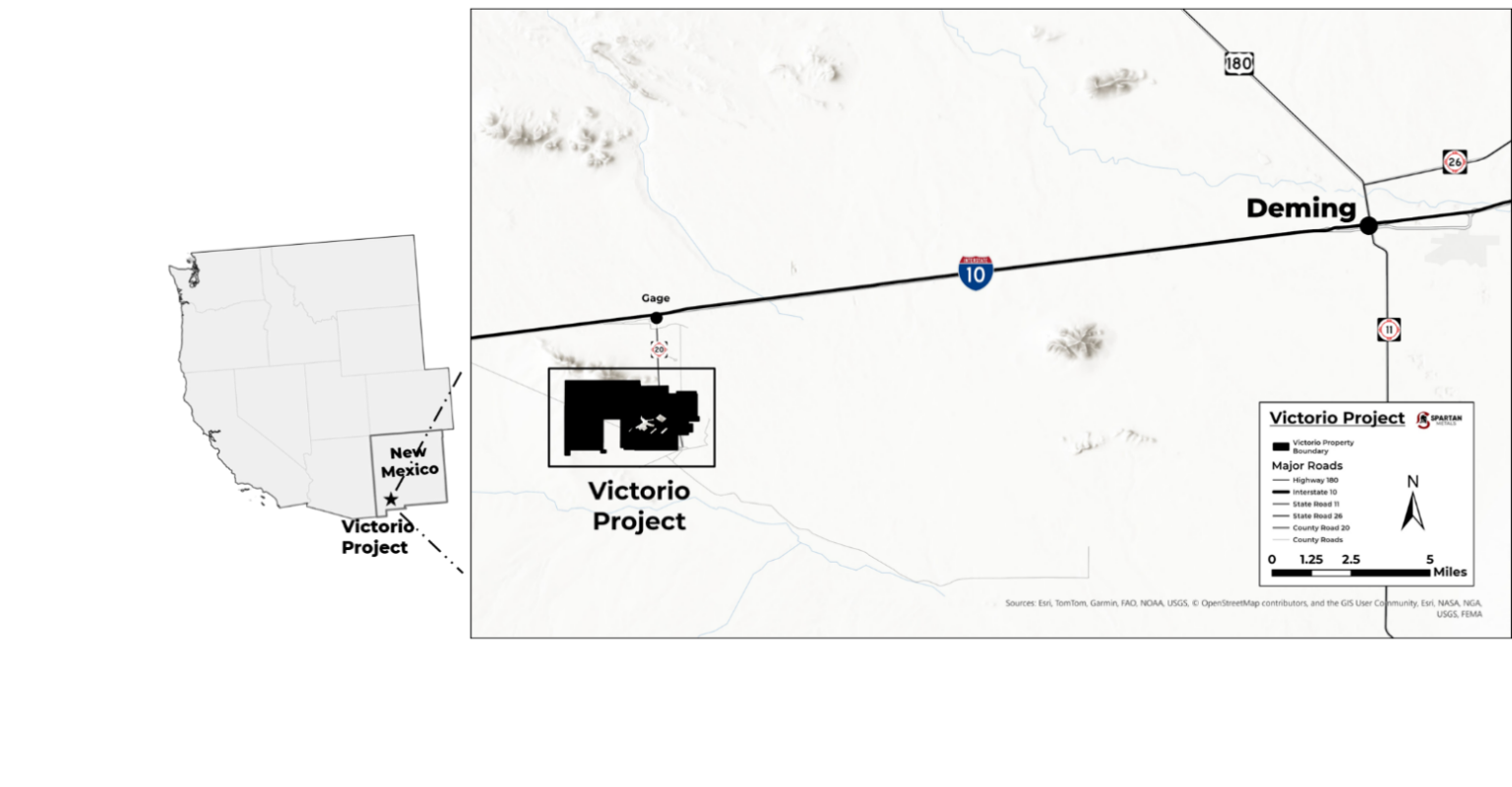 March 17, 2026 (Source) — Spartan Metals Corp. (“Spartan” or the “Company”) (TSX-V: W OTCQB: SPRMF | FSE: J03) is pleased to announce that it has entered into a definitive option agreement (the “Agreement”) dated March 13, 2026, with Donegan Resources, LLC (“Donegan” or the “Owner”), an arms-length party. Pursuant to the Agreement, Spartan has been granted the option (the “Option”) to earn a 100% interest in the Victorio Tungsten-Molybdenum Project (“Victorio” or the “Project”) in Luna County, New Mexico (Figure 1).